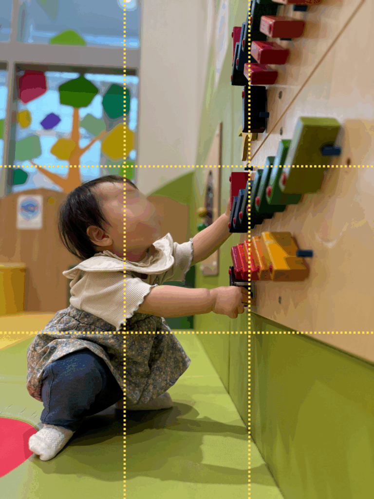 私は娘を撮るとき、人物を線の上に置くようにして背景に余白を作ることで、