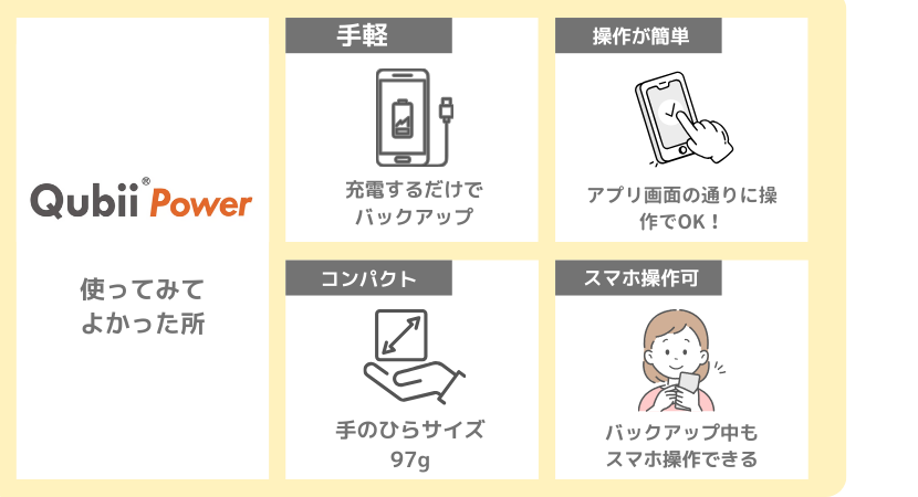 充電するだけで自動でバックアップされるQubiiはとても相性が良いです。